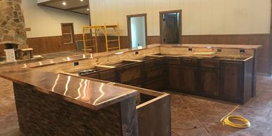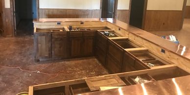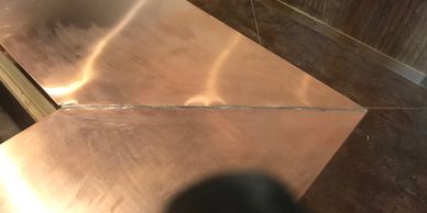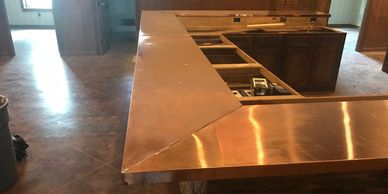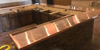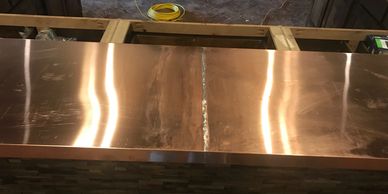 Our specialty. Copper counter tops can be fabricated from 16, 20, 24 and 48 oz copper. We usually recommend 48 oz copper, for it's durability and ease to weld / blend seams. The thinner the material is, the easier it is to get dented with usage. For some applications, that is preferred, which gives a top a more rustic / used look.